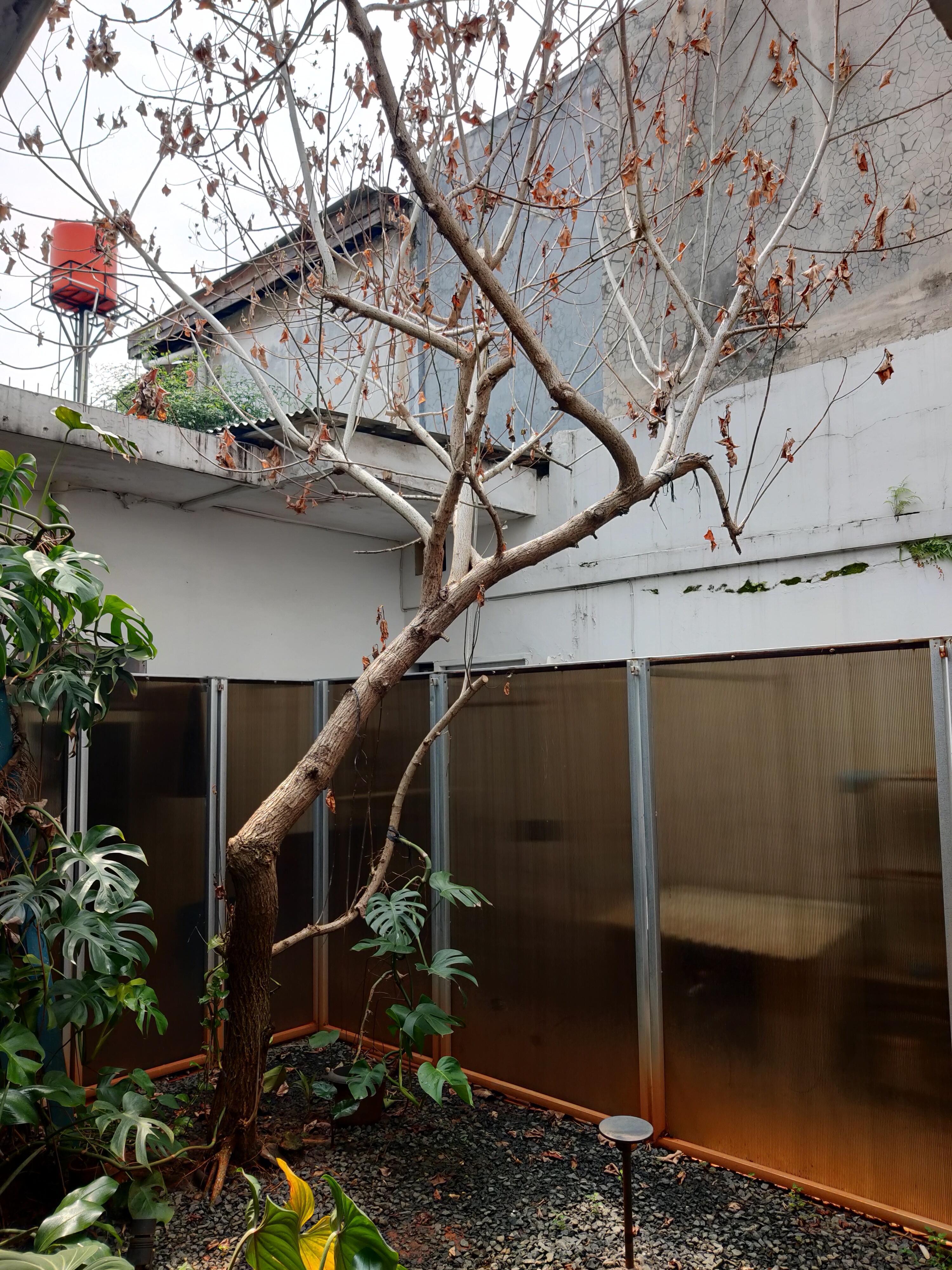 Takeout pohon sampai akar, kasih obat anti rayap dan hama dan buang pohonnya